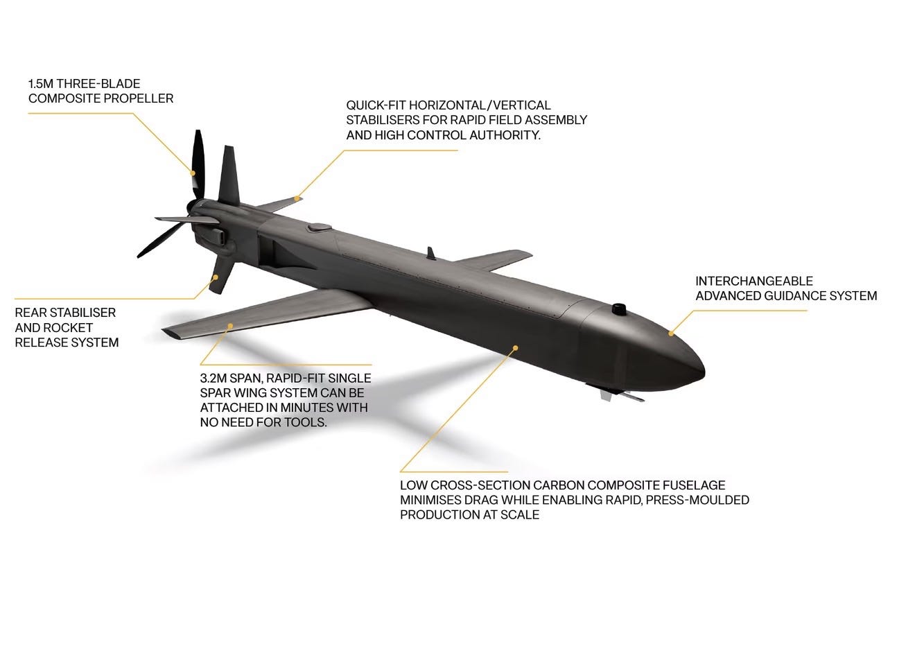 Combines exceptional range, payload capacity and cost-effective scalability to bridge the gap between conventional drones and traditional combat aircraft