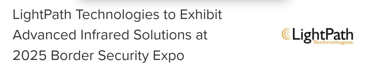 With Ondas’ newly announced border contracts and the continuing expansion of their CUAS footprint into federal and state infrastructure sites, 2026–2027 could see Substantial follow-on orders, Higher-rate production, and Joint-stack integration between sensors, optics, and interdiction systems. Ondas will provide drone hardware to compliment the towers but someone must provide the eyes. Lighpath is increasingly becoming that someone. Which brings us to the largest new catalyst on the call.