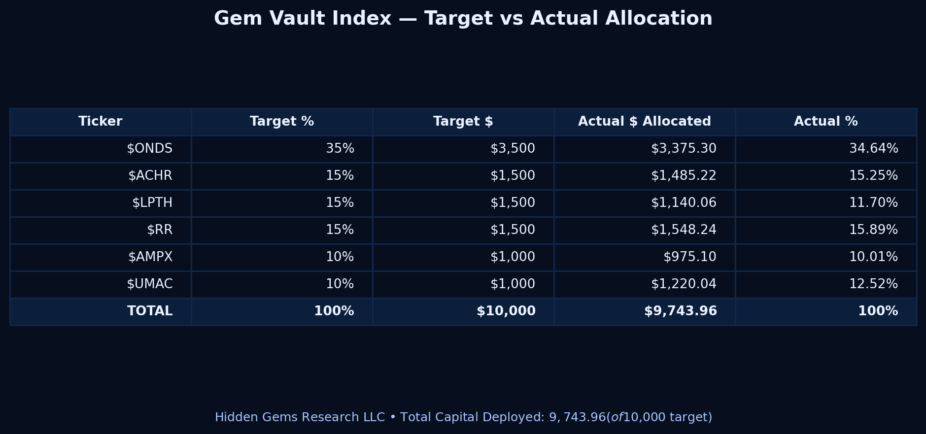 The Gem Vault: Initial Strategy and Position Overview ($10,000)