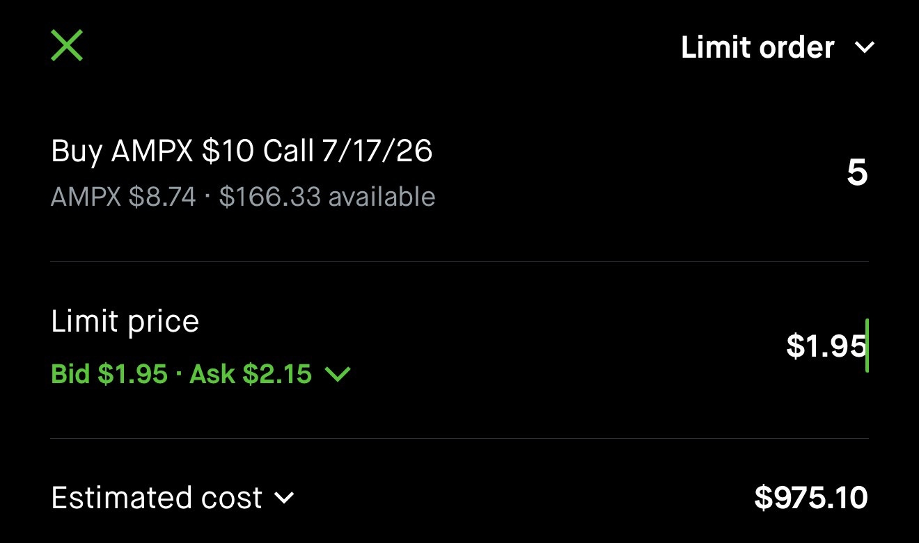 5. AMPX 0.00%↑ 10% Starting Target: Out of the money calls here, I like AMPX under 13 and think we could see a resurgence after recent support gap ups.